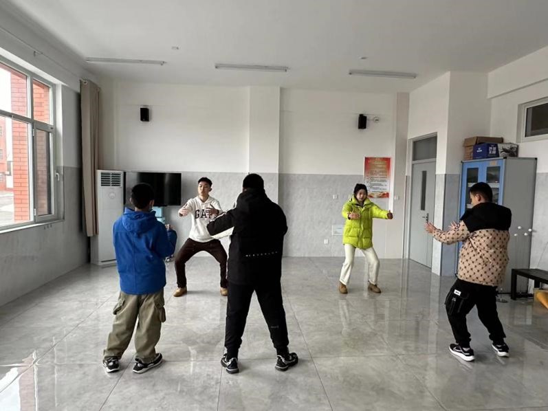 传递温暖的同时,帮助小朋友们八段锦中“左右弯弓似射雕”动作,充分的活动颈部、拉伸四肢和疏通经络,改善心理健康,提高免疫力,可以帮助他们放松身心、缓解焦虑、抑郁等情绪问题。实践队员们用悉心教导和真心关爱,冲破一道道困难,一步步地教授动作细节,面对小朋友学不会的情况时,实践队员走到小朋友身边,放慢速度,用以温柔的语气重复着同样的话,在教学过程中实践队员们时时关注小朋友们的学习动态,面对理解有误的小朋友,实践队员走上前来,手把手地带领小朋友进行学习并掌握动作要领。孩子们不仅学会了新技能,更重要的是,他们在与社会的互动中增强了自信,提高了沟通能力,这对于他们未来独立生活和社会融合具有深远的意义。