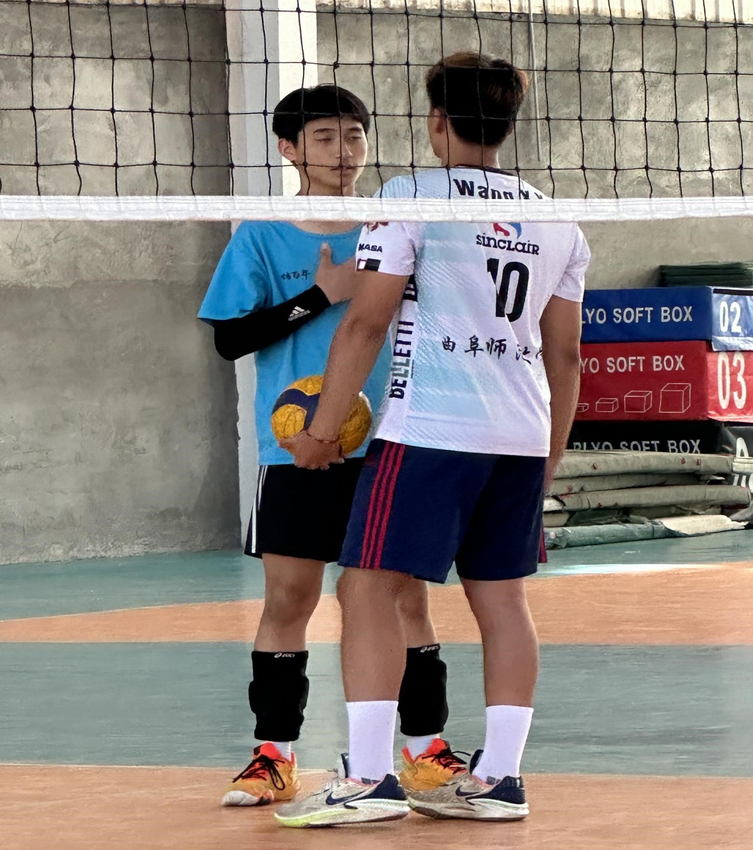 (上图为实践队员王心宇与球员一起进行对抗比赛)
