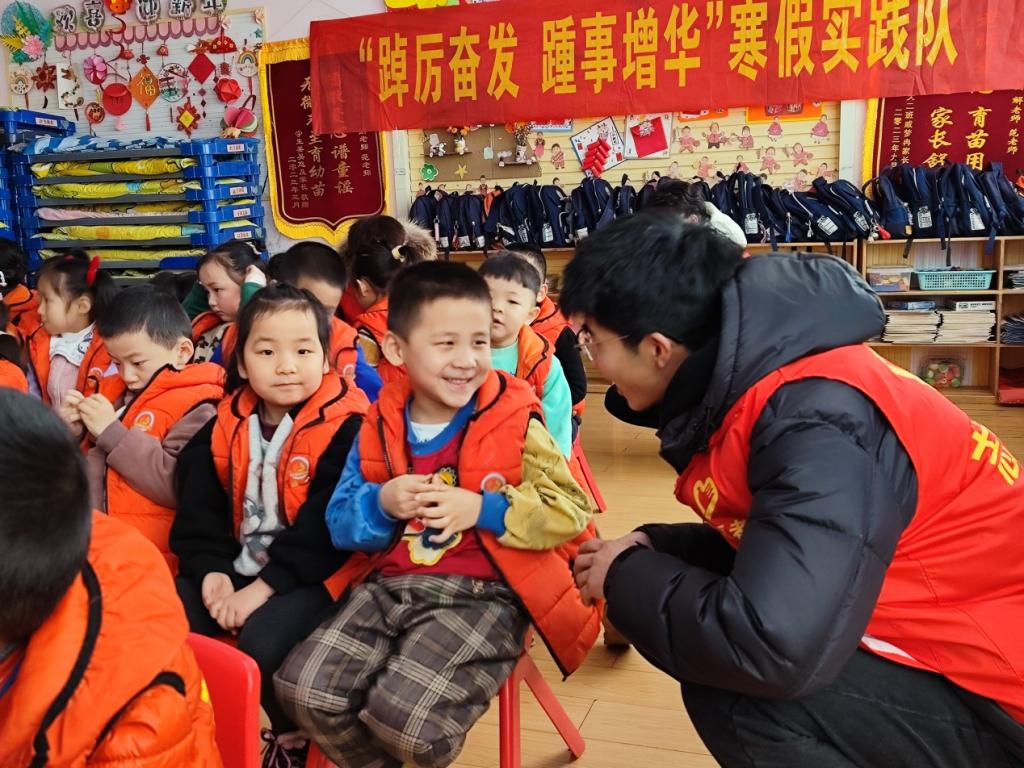 图为实践队员与小朋友们互动交流如何学习雷锋精神。高玉斌.供图