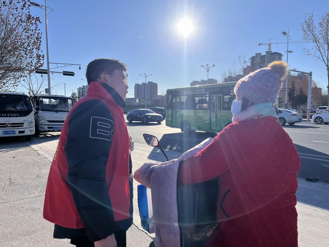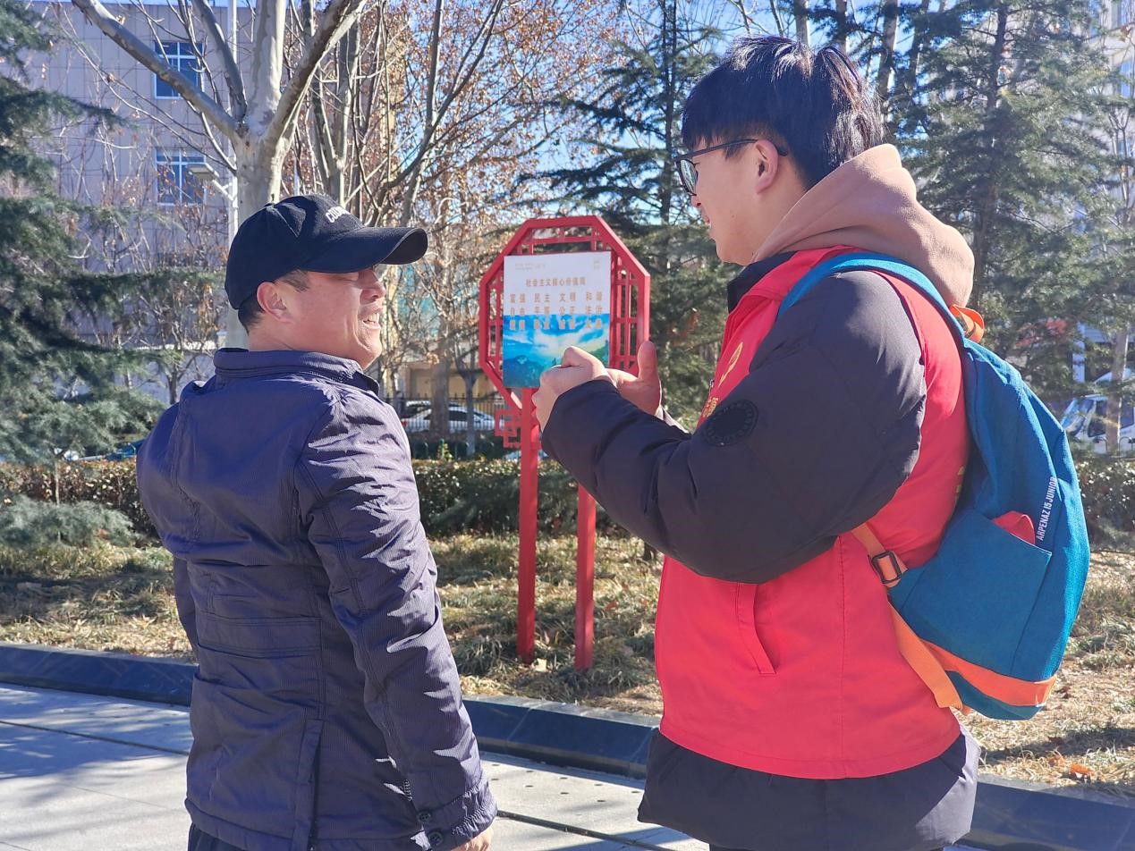 图为实践队员在展览馆门口对泰安市民做访谈。孔祥地 供图