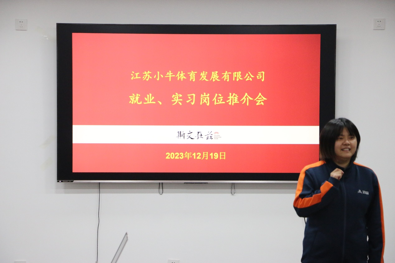 举办“江苏小牛体育就业、实习岗位推介会”。体育学部党委副书记马振华,辅导员栾永鑫、郗来军出席本次会议,2021级实习生参加本次推介会。