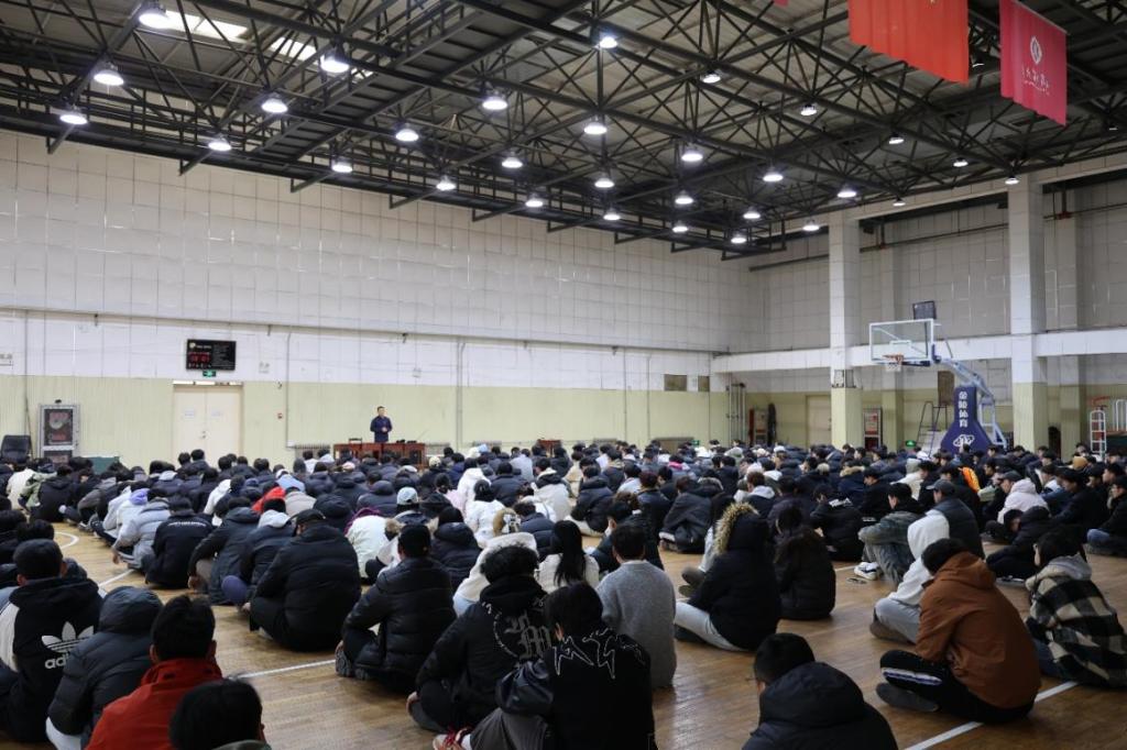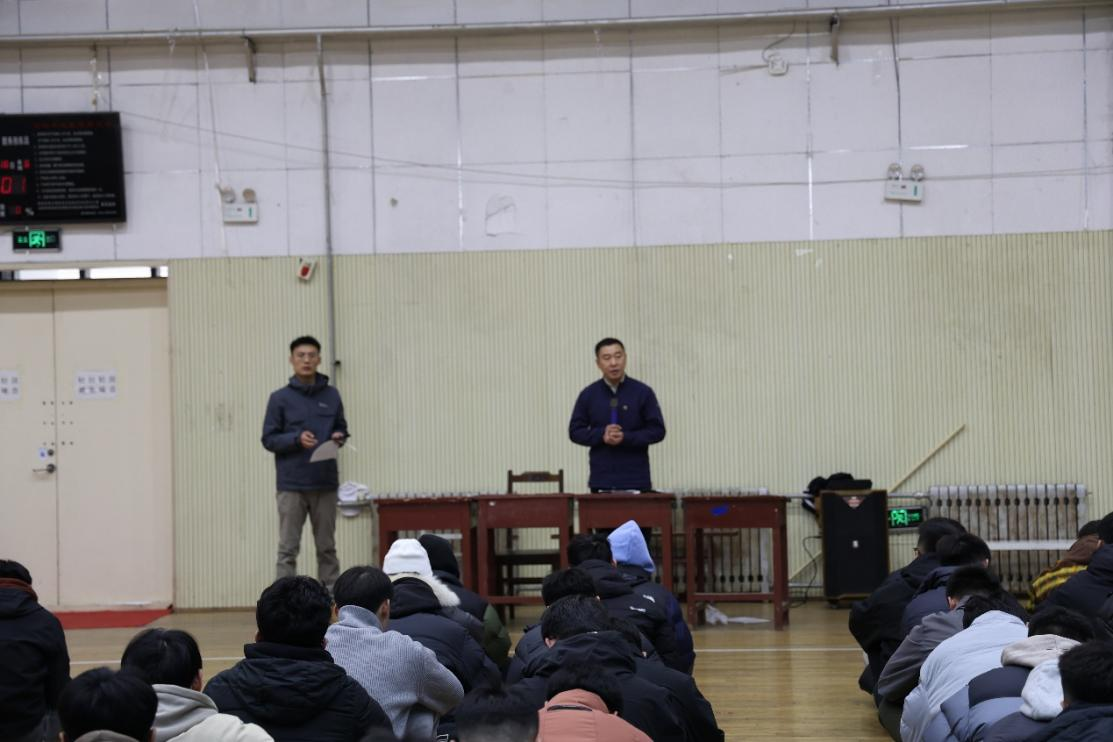 召开就业及安全教育大会,体育学部党委副书记马振华、2021级本科生辅导员栾永鑫共同主持本次大会,2021级本科生参加会议。