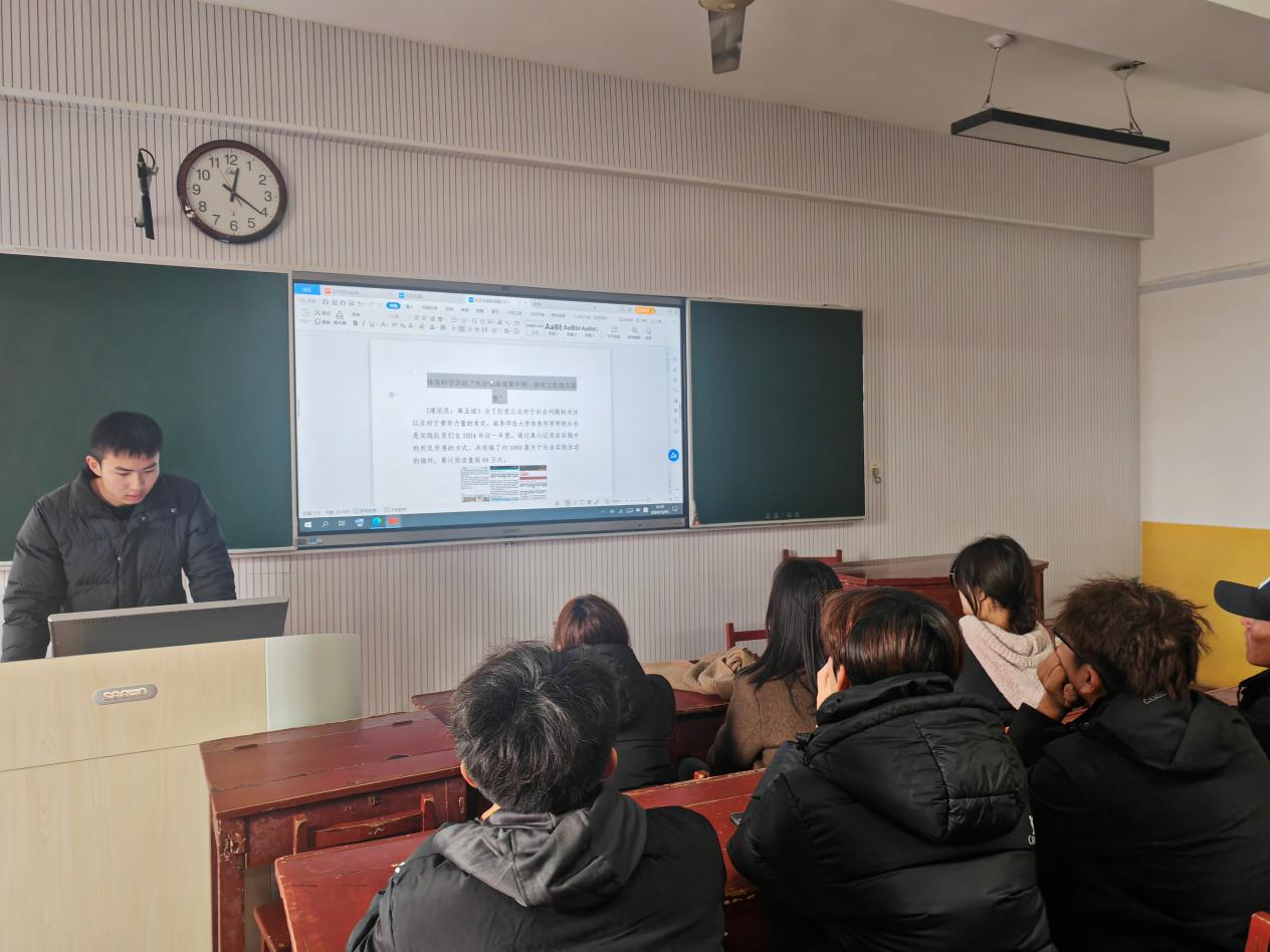 会议上,臧子浩详细讲解了文件格式,讲解过程逻辑清晰、案例翔实,为大家后续高效处理工作筑牢了根基,助力团队整体办公效能提升。 从“实践流程概况”“中青校园”使用指南、“投稿网站”“答辩注意事项”等四个方面向在场新生介绍了社会实践活动基本流程,使同学们了解到参与社会实践活动的具体流程及注意事项,并鼓励引导新生积极参与到新一轮的社会实践活动中。