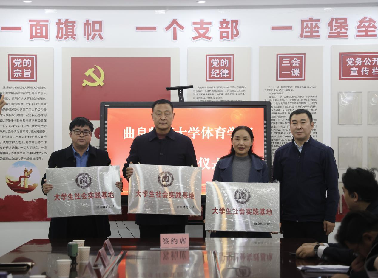 与济宁市金乡县8所学校举行“学生就业基地”“教育实习基地”“大学生社会实践基地”签约暨授牌仪式。金乡县教体局党组书记、局长刘宗占,县教体局党组成员、副局长吴鲁梁,体育学部党委书记许怀祥,体育学部党委副书记马振华,bet365