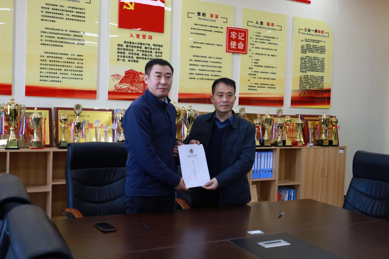 张增碧与许怀祥为“教育实习基地”授牌,邵锐与马振华签署“教育实习基地”协议。