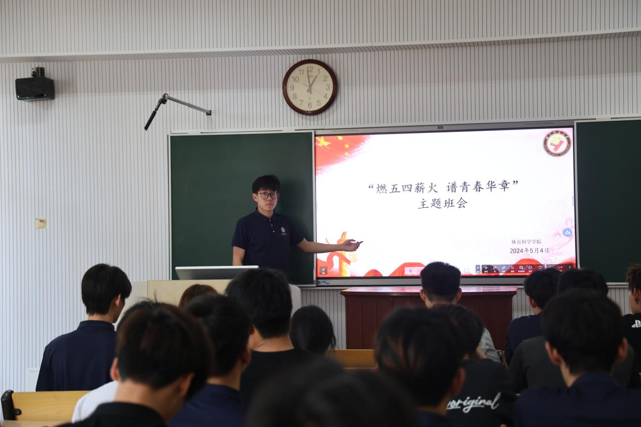 于5月4日组织开展了五四青年节“燃五四薪火,谱青春华章”的主题班会。