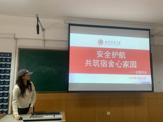 辅导员郗来军讲解了用电安全、消防知识、应急处理等多个方面。同时,向学生发放安全手册,详细介绍宿舍安全的重要性以及日常安全注意事项。