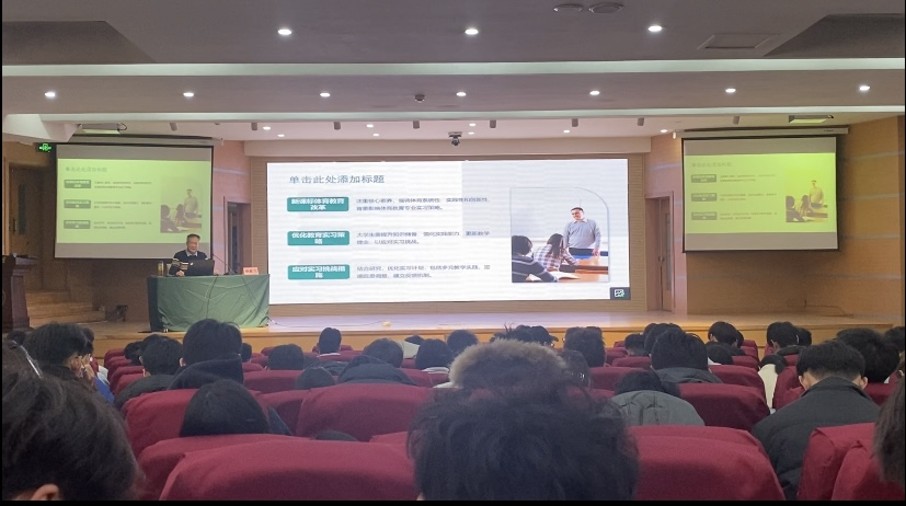 教授解毅飞担任主讲人。体育学部党委副书记马振华、山东省乡村振兴体育研究院副院长曾凡鑫出席活动,学院2022级全体本科生参加活动。