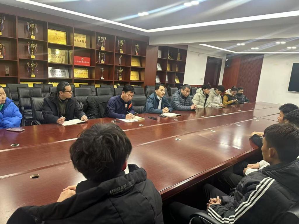 院长、公共体育教学部主任姜付高,体育学部党委副书记马振华,山东省乡村振兴体育研究院副院长曾凡鑫,大赛教练团队出席本次会议,学院2022级参赛本科生参加会议。