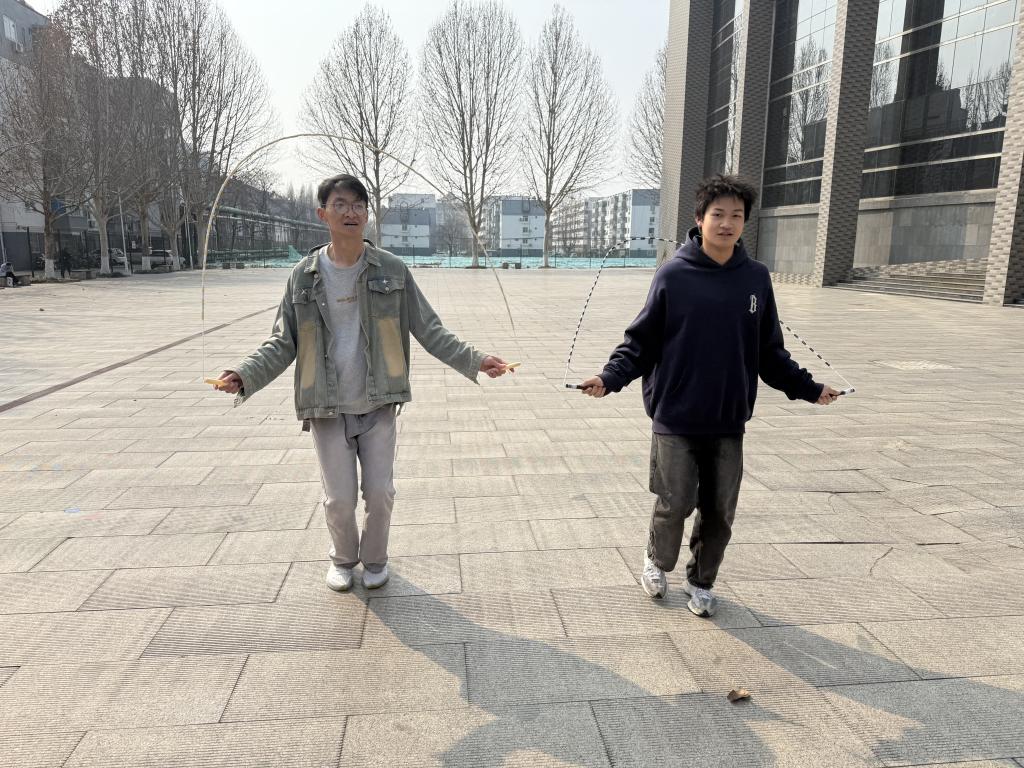 在跳绳比赛环节,现场气氛被推向了高潮。比赛分为个人赛与团体赛,同学们踊跃组队、积极参与。随着裁判一声令下,一根根跳绳飞速舞动,选手们身轻如燕,脚尖快速点地,展现出敏捷的身手与出色的节奏感,也推动了同学们的运动热情。