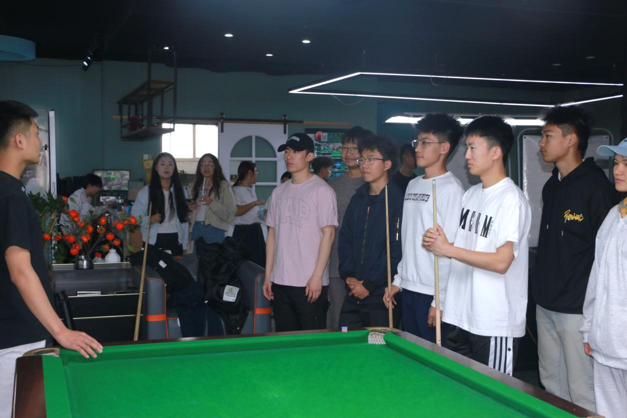 此次活动中,朋辈导师于祥宝凭借丰富的经验与专业能力脱颖而出。课程设计上,于祥宝精心规划了系统且全面的教学内容,从最基础的握杆姿势、发力技巧,到复杂的母球走位控制、击球策略,每一个环节都进行细致入微的讲解与示范。在授课过程中,他充分发挥朋辈优势,以耐心亲和的教学方式,结合自身实践经验,让同学们轻松掌握台球运动的精髓。无论是零基础的初学者,还是有一定基础的爱好者,都能在课堂中收获成长,提升台球技艺,享受运动带来的乐趣。