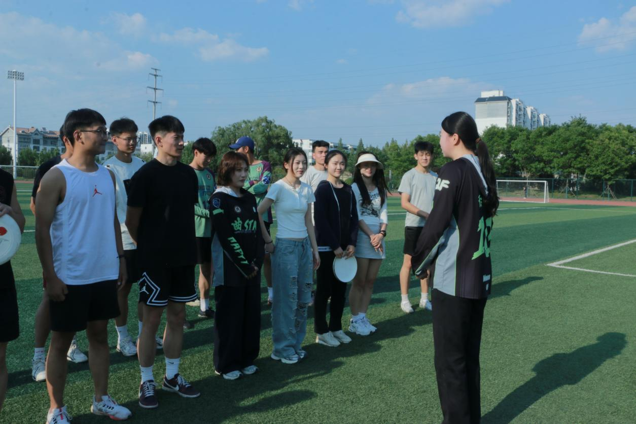 本次活动聚焦飞盘专项领域,整合优质资源为学员成长保驾护航。朋辈导师徐颢月凭借丰富的经验和专业知识,为参赛同学们量身定制了训练计划。从飞盘的基本结构、国内飞盘运动的发展现状,到详细的比赛规则,她都进行了深入浅出地讲解。在动作教学环节,反手出盘、双手接盘、跑动接盘等基础动作的规范和技巧,也在她耐心指导下,被同学们逐步掌握 。