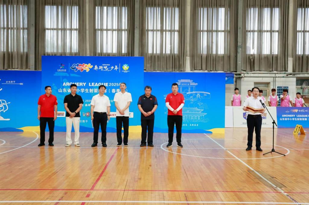 刘刚在致辞中表示,学校依托地域文化优势将“孔子射艺”列为重点建设项目并成功获批教育部首批中华优秀传统文化传承基地。射箭运动源远流长,魅力独特,不仅是强身健体的方式,更是磨炼意志、培养专注力和心理素质的有效途径。本次联赛是山东省中小学生体育赛事的重要活动,为热爱射箭的同学们提供了展示自我、交流技艺的平台。希望参赛者以顽强拼搏的精神和精湛技艺,诠释对射箭运动的热爱与执着,充分展现山东中小学生朝气蓬勃、积极向上的精神风貌。