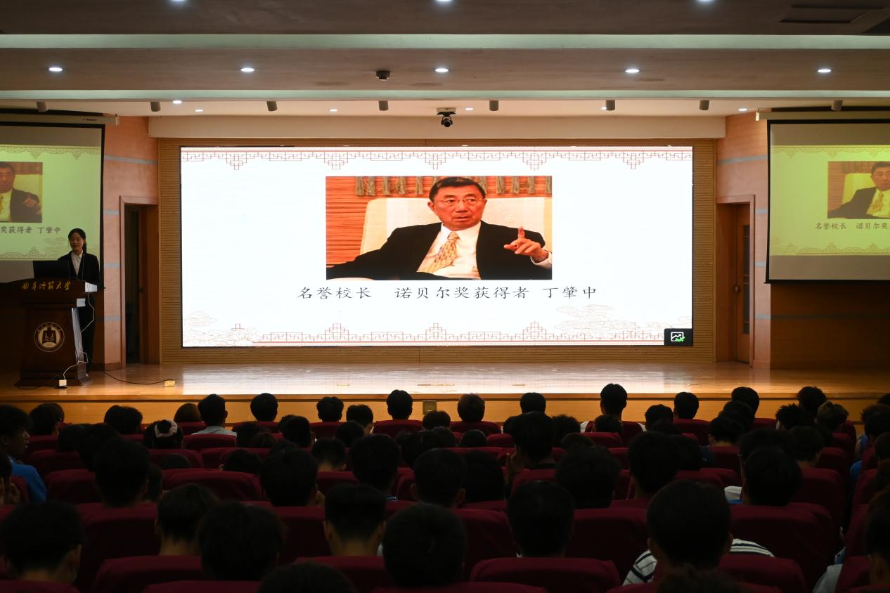 活动中,还着重介绍了学校的杰出人物,当诺贝尔物理学奖获得者、名誉校长丁肇中的照片出现在屏幕上时,引发了台下师生的热议。同时,现任党委书记邢光、校长张洪海为学校发展殚精竭虑的事迹也被娓娓道来,激励着现场每一位师生以他们为榜样,为学校的发展贡献力量。