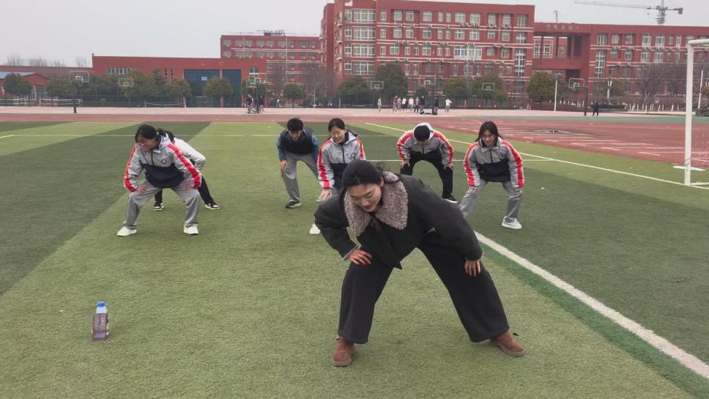 在教学实践环节,实践队员面对整齐列队的高中生,展开了系统化的“八段锦”教学。每一个动作都经过细致分解和反复示范,同时注意纠正动作细节,在舒缓的音乐伴奏下,学生们逐渐掌握了“八段锦”的基本套路。通过“摇头摆尾去心火”等动作的反复练习,学生们不仅体验到了传统养生功法的独特魅力,更在实践中领悟到中华武术“刚柔并济、形神兼备”的文化精髓,感受到身体与心灵的和谐统一。活动过程中,学生们专注的神情、规范的动作,展现出对传统体育文化的浓厚兴趣和认真学习态度。