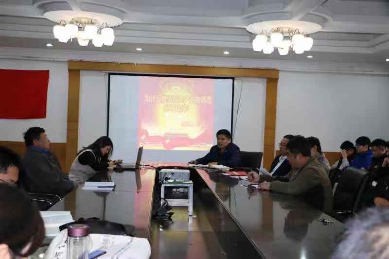 党委书记刘敏于学院一楼会议室为全院党员上了一堂题为《为什么要坚持共产党的领导永不动摇》的专题党课。