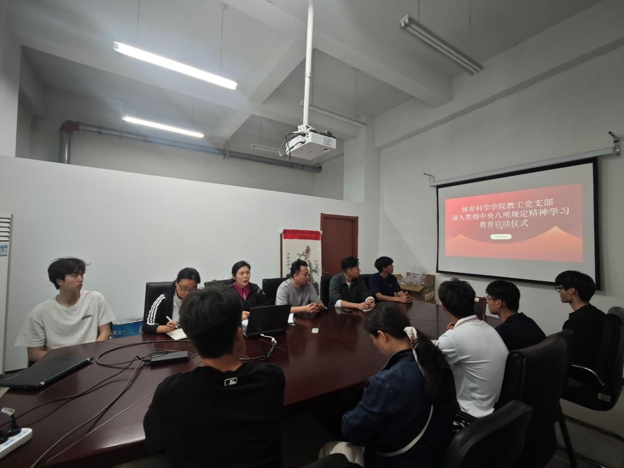 3月28日,体育科学学院教工党支部召开全体党员大会,启动部署深入贯彻落实中央八项规定精神学习教育工作,教工支部书记许凤英主持会议,全体教工党员参加会议。