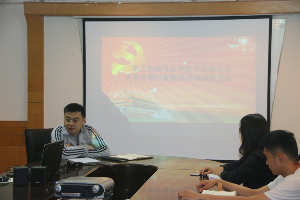梁贺涵老师首先向全体参会学生传达了习近平总书记的重要讲话内容,强调了总书记对广大青年学生提出的几点希望,并通过视频真切的回顾了总书记在考察北大时对教育工作者和青年学生的亲切关怀,令在场学生心潮澎湃。随后,辅导员刘京老师对全体学生提出几点要求,广大同学、学生党员、学生干部要深刻领会习近平总书记对青年学生的殷切期望,要有仁爱之心,热爱祖国、关爱他人,秉承“艰苦奋斗、自强不息”的体科院精神,在求学路上做到学有所思、学有所悟,同时将所学知识运用到实践当中,真正做到知行合一,扛起社会主义建设者和接班人的使命担当,为“一流学科”和高水平大学建设贡献力量,在实现中国梦的洪流中书写精彩华章!