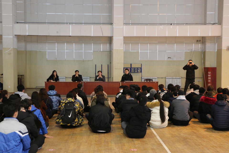 新篮球馆召开了学生干部安全教育大会。此次大会由院党委副书记展利民主讲,团委副书记梁贺涵主持,学院辅导员、团委学生会全体成员及各班班长和团支书参加了此次大会。